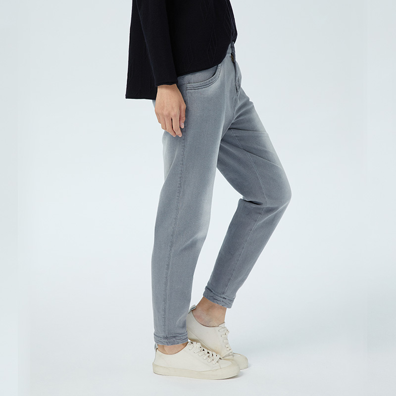 ウエストから裾まで美しいラインを描くレディーススキニーパンツ。裾のリブデザインがスタイリッシュなアクセントとなり、白いスニーカーとのコーディネートが際立つ。デニム素材は伸縮性に富み、快適な着用感を提供。シンプルながらも洗練された印象を与え、デイリーユースにも最適なアイテム。自分らしいスタイルを楽しむための必須アイテム。